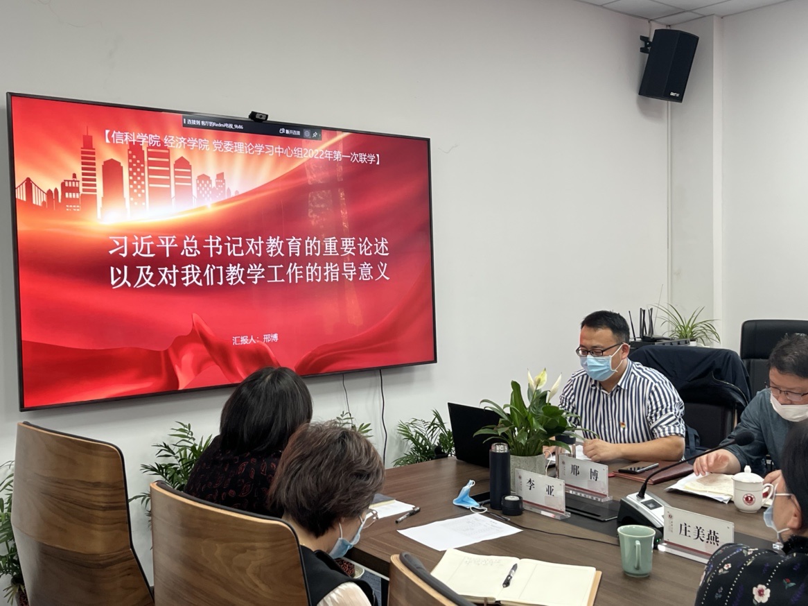 与经济学院在尚德楼268会议室开展党委理论学习中心组联学。经济学院党委书记施敏颖主持会议,两个学院党政班子成员参加联学,嘉兴学院副校长陈荣达出席会议并指导。