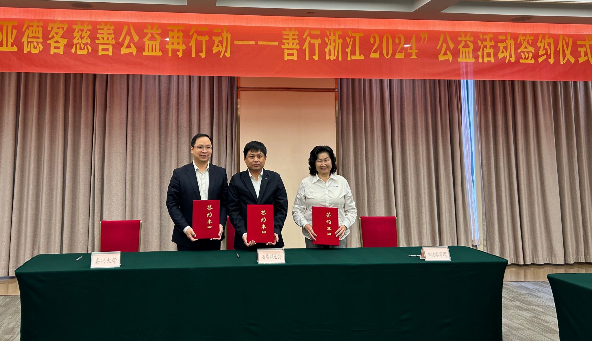 王立玮、楼喻刚和廖锦琳代表三方签署合作协议。亚德客国际集团董事长王世忠先生通过浙江省慈善联合总会向我校教育发展基金会每年捐赠人民币54万元,持续6年,合计324万元,用于支持我校教育事业发展,帮助困难学生。会上,亚德客国际集团大陆事业部专案经理廖锦琳详细介绍了“亚德客慈善公益再行动——善行浙江2024”项目实施内容。
