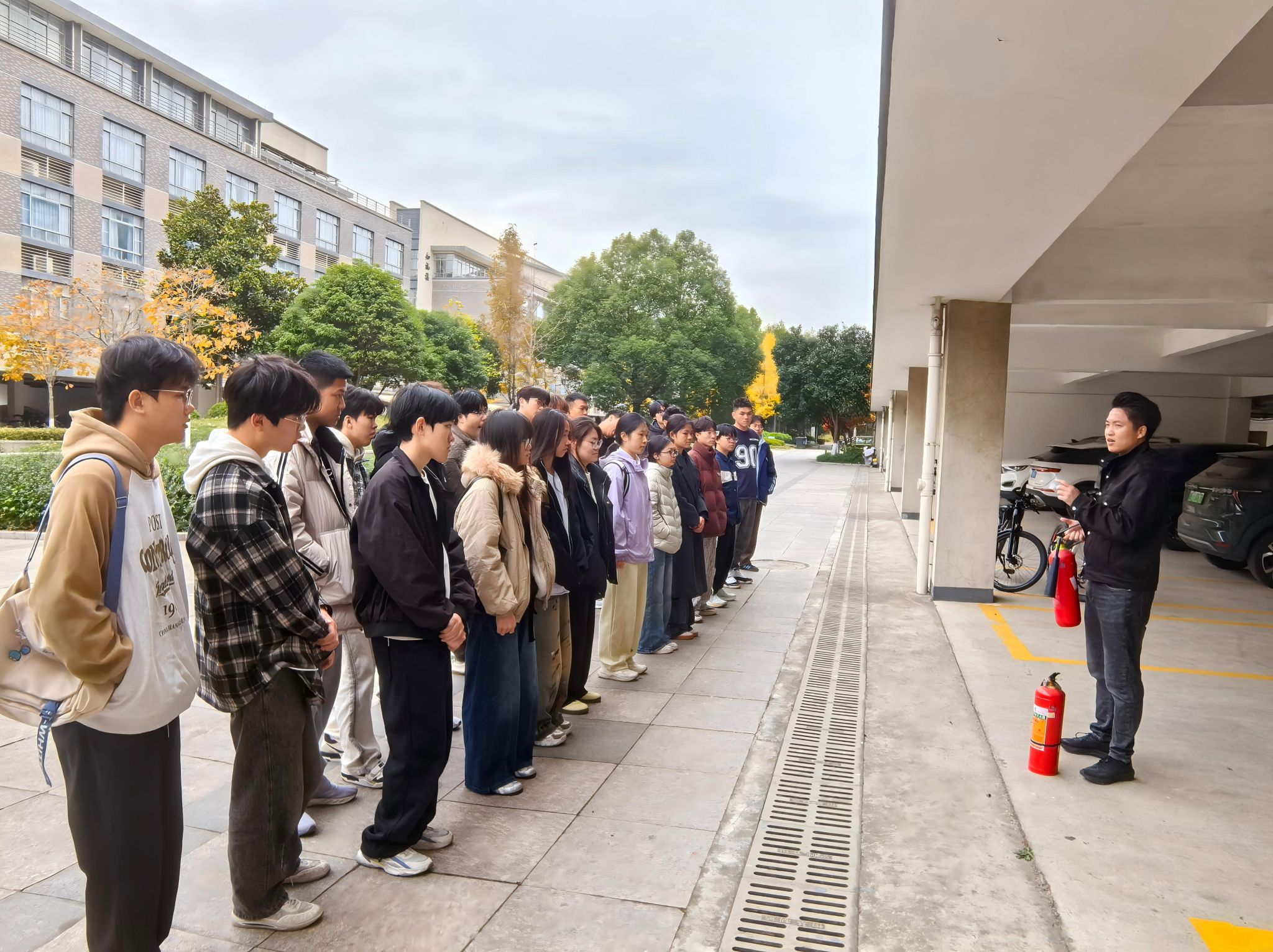 保卫处丁伟老师指导同学们进行消防实操训练,重点讲解校园常见的消防水管与灭火器的工作原理、适用场景及正确使用步骤,并结合演示指出操作中的重点与易错点。通过理论学习与实操体验,同学们进一步强化了消防安全意识,熟悉了消防器材的使用方法,提高了火灾发生时的自救与互救能力。