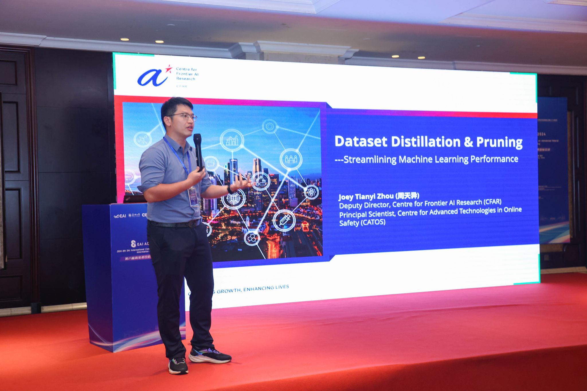 会议邀请了合肥工业大学吴信东教授、杭州电子科技大学颜成钢教授、新加坡前沿人工智能中心周天异教授、河海大学韩光洁教授做主题报告。主题报告由电磁空间安全全国重点实验室(嘉兴)主任王巍研究员主持。