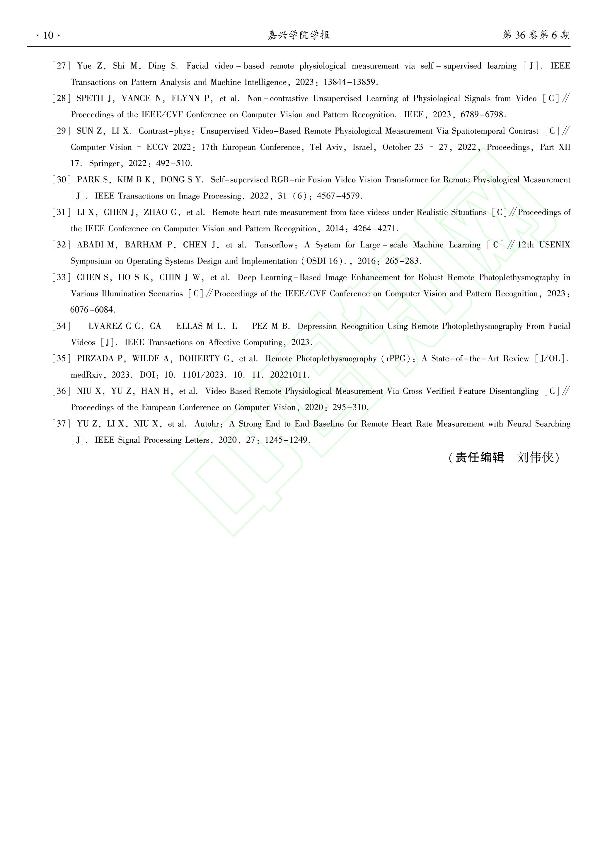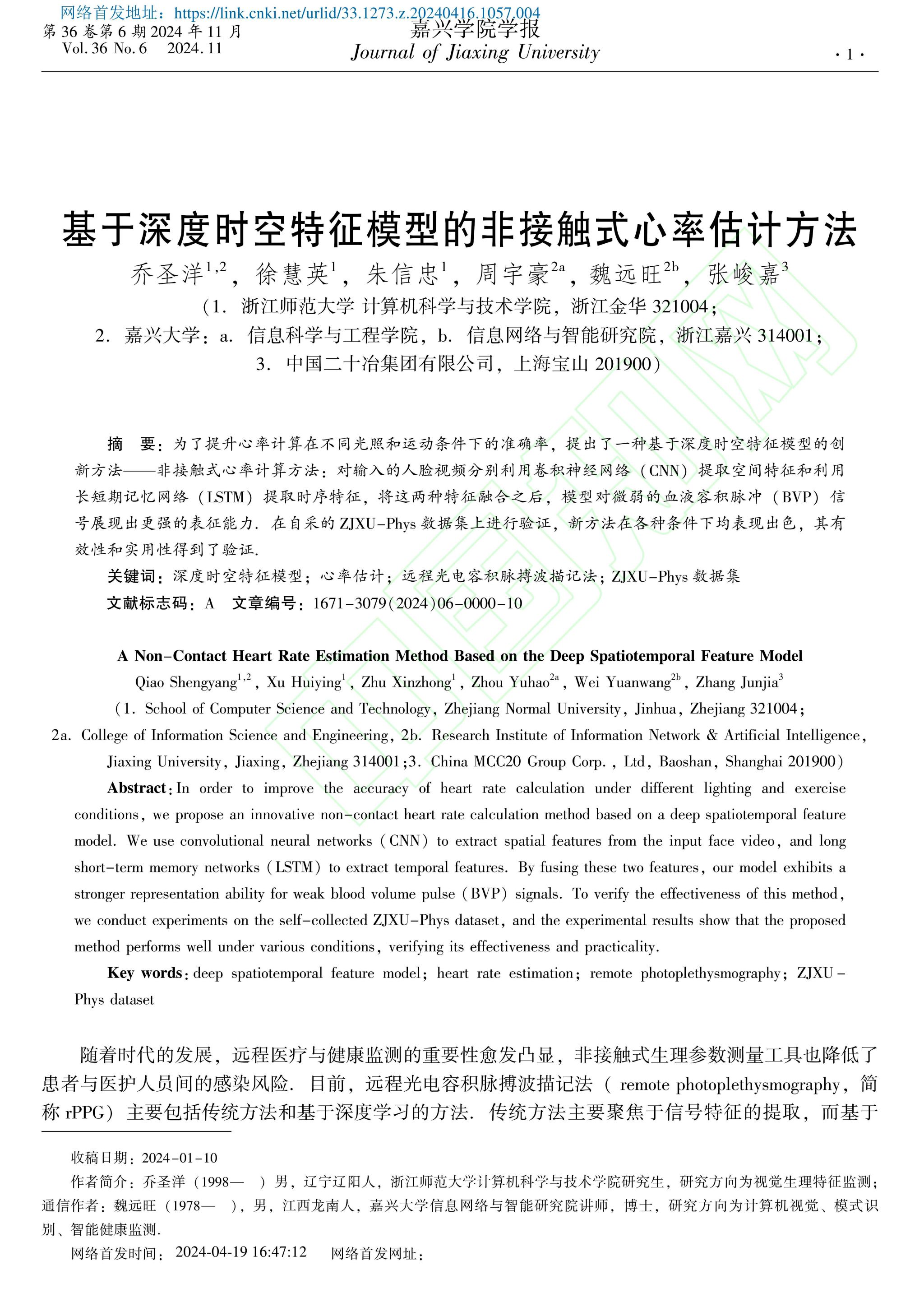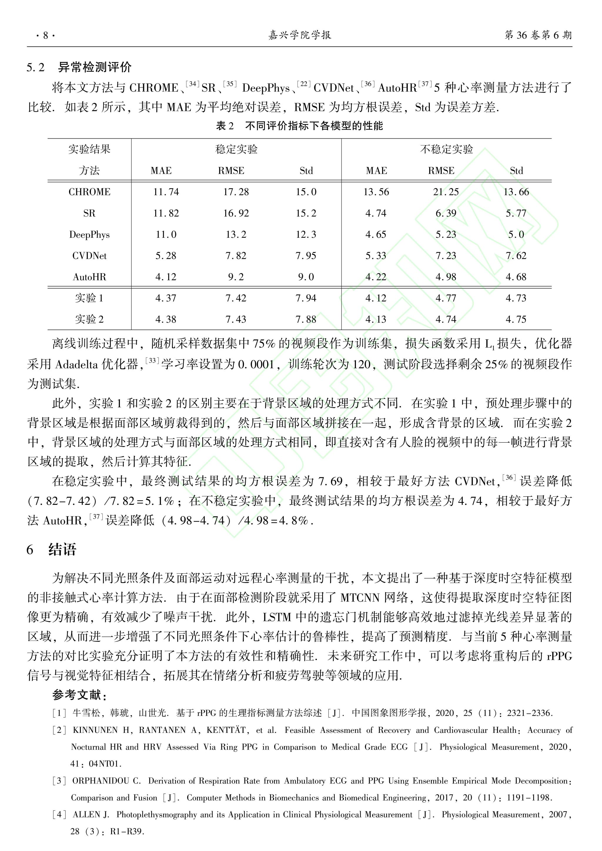 【论文】魏远旺,基于深度时空特征模型的非接触式心率估计方法